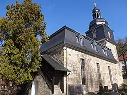 Diese im Blickfeld über den Häusern hervorragend stehende Kirche ist nunmehr denkmalgeschützt und wurde 1990 umfassend renoviert. Sie besitzt Buntglasfenster und eine wahrscheinlich 1837/1843 von Friedrich Menger aus Paulinzella gebaute Orgel. (Andere Quellen nennen Johann Daniel Schulze aus Milbitz als Erbauer und das Baujahr 1752.)
