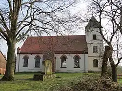 Die verputzte Saalkirche wurde in der ersten Hälfte des 18. Jahrhunderts unter Einbeziehung des Vorgängerbaus errichtet und 1902/03 im neugotischen Stil umgebaut. Sie besteht aus einem Langhaus mit fünf Fensterachsen, das mit einem Satteldach bedeckt ist, und einem quadratischen, dreigeschossigen Kirchturm im Westen, dessen oberstes Geschoss hinter den Klangarkaden den Glockenstuhl beherbergt und auf dem ein Pyramidendach sitzt.
