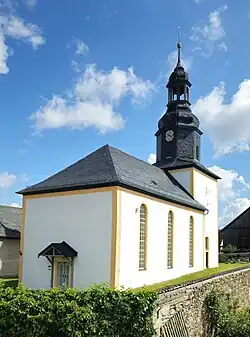 Die Jahreszahl 1775 über dem Eingang deutet auf die Fertigstellung der heutigen Dorfkirche. Aus dem geschichtlichen Unterlagen geht hervor, dass ein Vorgängergotteshaus existiert hat.
