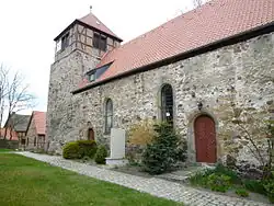 Die geostete Dorfkirche besteht im Kern aus einer mittelalterlichen Anlage. In der ersten Hälfte des 18. Jahrhunderts erfolgten starke Veränderungen. Heute besteht die Kirche aus einem rechteckigen Saalbau mit einem Westquerturm. Barocke Rundbogenfenster prägen die seitliche Ansicht. Der Innenraum wird durch ein einheitliches barockes hölzernes Tonnengewölbe und einfache zweigeschossige Emporen dominiert. Die Kirche inmitten des mauereingefassten Kirchhofes bildet mit dem ausgedehnten Pfarrhof ein das Ortsbild prägendes Ensemble.