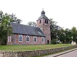 Es handelt sich um eine große rechteckige Fachwerkkirche mit Westturm, die im Jahr 1745 unter Verwendung von Hölzern eines Vorgängerbaus von 1592 errichtet wurde. Es gibt Inschriften im Türsturz und auf der Wetterfahne des Turms aus dem Jahr 1746. Der Turm hat eine geschweifte Haube und eine Laterne. An der Südseite befindet sich ein Putzportal mit einem Volutengiebel. Die Schiffsfenster wurden im neugotischen Stil verändert. Das Kranzgesims ist mit sichtbaren Balkenköpfen, einer Schwelle und Füllhölzern profiliert. Im Inneren gibt es ein hölzernes Muldengewölbe. Der Raum unter der Westempore wurde um 1960 als Winterkirche ausgebaut. Eine Restaurierung fand 1994/95 statt.