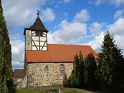 Die Kirche wurde wahrscheinlich im späten 12. Jahrhundert erbaut. Sie ist somit eine der ältesten Kirchen im Niederen Fläming. Das Feldsteinmauerwerk ist noch unregelmäßig, so dass angenommen wird, dass die Kirche vor anderen Flämingkirchen entstanden ist. Die Kirche wurde im Dreißigjährigen Krieg zerstört und danach wieder aufgebaut. Die Wetterfahne trägt die Jahreszahl 1686, wahrscheinlich das Jahr des Wiederaufbaues. Das Dachwerk stammt aus dieser Zeit. Von 1864 bis 1865 wurde die Kirche renoviert, dabei entstanden die großen Rundbogenfenster. 1934/1935 wurde bei einer Renovierung der Fachwerkturm neu erbaut. Der Turm trägt ein geschweiftes Zeltdach. In den 1970er Jahren wurde die Bemalung aus dem Jahr 1892 beseitigt. Vor 2000 wurde das Dach neu gedeckt und der Turm erneuert.