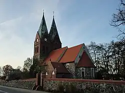 Die Kirche ist eine Saalkirche aus sorgfältig gequadertem Feldsteinmauerwerk mit eingezogenem Chor, Apsis und Westquerturm, aus dem zweiten Viertel des 13. Jahrhunderts; sie wurde gegen Ende des 15. Jahrhunderts eingewölbt. Der doppeltürmige Backsteinaufsatz des Westturms in frühgotischen Formen mit zwei kupfergedeckten Spitzhelmen und die neugotische Backsteinvorhalle im Süden stammen aus dem Jahr 1901, gleichzeitig wurden die Fenster spitzbogig vergrößert und das ganze Bauwerk neu verfugt.