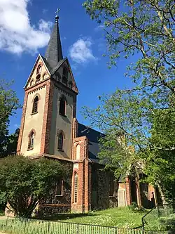 Zwei Epitaphe an der äußeren Südseite des Kirchenschiffs erinnern an Albrecht Thuem, der 1584 starb sowie an den Pfarrer George Adolph Schindler (verstorben 1728) sowie dessen Ehefrau, die 1723 starb. Nordwestlich steht auf dem Grundstück ein Findling, dessen Inschrift verwittert ist.
