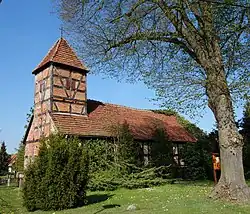 Es handelt sich um einen gestreckten, rechteckigen Fachwerkbau aus dem Jahr 1870, der große spitzbogige Holzmaßwerkfenster und einen westlichen Dachturm aufweist. Das Innere ist in einfachen klassizistischen Formen gestaltet. Der Innenraum wird durch eine hölzerne Tonne mit gemalter Kassettierung überspannt und durch ein großes, östliches Lünettenfenster betont.