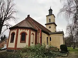 1694 wurde der ursprüngliche Kirchturm durch einen Blitzschlag zerstört. Dasselbe passierte wiederum 1756. Im Jahr 1781 wurde die Kirche schließlich durch den heutigen Turm erweitert. Im selben Jahr erhielt die Kirche auch eine Glocke. Zudem wurde die Kirche im 18. Jahrhundert nach den Wünschen von Friedrich dem Großen barockisiert.[2]