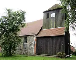 Das genaue Baujahr der Dorfkirche ist nicht bekannt, jedoch sicherlich nicht erst im Jahr 1686, wie manche Vermutungen nahelegen. Die Jahreszahl auf der ehemaligen Wetterfahne bezieht sich höchstwahrscheinlich auf den Bau des Turms. Das Mischmauerwerk des Kirchenschiffs besteht aus regellos versetzten gespaltenen Findlingen, Ziegelbruch und orangeroten, 28,5–29 x 14–14,5 x 9 cm großen Backsteinen und stammt vermutlich aus dem Spätmittelalter (Ende 15. oder frühes 16. Jahrhundert). Für die sorgfältigen Gebäudeecken und die Laibungen der Öffnungen wurden ebenfalls Backsteine verwendet.