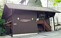 - An den Aussenwänden gegen den Fischingerbach sind Gegenstände zur Fischerei im Rhein zu sehen sowie eine 120 Jahre alte Wasserleitung.