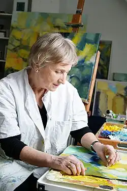 Seit 1981 ist sie auch freischaffend als Malerin tätig, vor allem in den Genres Stillleben und Landschaft. Ihren Stil, landschaftlich-tektonische Phänomene unter der Einwirkung des Lichts in Farbkompositionen zu übersetzen, entwickelte sie ab 1986. Ihr Bild der langfristig kulturell überformten Naturlandschaft, disponiert durch atmosphärische Eindrücke des Moments ist geprägt durch Aufenthalte in den östlichen Alpen, in Griechenland, der Türkei, Israel und Marokko sowie im Nordwesten Amerikas. Vegetative Formen, angeregt durch Wahrnehmungen im eigenen Garten, fließen in ihr Werk ab 2008 ein, dann auch im Farb-Holzschnitt (als Unikatdruck).