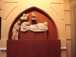Die Lünette des rechten Portals der Kathedrale von Florenz beherbergte die Darstellung des Dormitio Virginis (Tod Mariens), mit der liegenden Madonna und einigen Figuren und Reliefs um sie herum. Um die Position der Madonna della Natività auf der linken Lünette wieder einzunehmen, hat Maria die Augen geschlossen und die Arme in der typischen Position der Toten verschränkt, während sich der Apostel Johannes zu ihren Füßen verbeugt und ihre Beine in einer dramatischen, aber gelassenen Trauerposition umarmt. Die Gruppe wurde 1904 von Georg Swarzenski unter den von Stefano Bardini verkauften Werken, zusammen mit anderen Skulpturen wie der Madonna della Natività, gefunden und nach Berlin gebracht, wo sie im Zweiten Weltkrieg schwer beschädigt wurde.