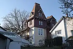 Bemerkenswert ist ein Jugendstilfenster auf der Südseite, das geschnitzte Balkongeländer im Obergeschoss, der Wohnturm und die aufwändig gestaltete Dachlandschaft. Das Anwesen wird von einer teilweise erhaltenen historischen Einfriedung begrenzt. Der Namenszug auf der Ostfassade dokumentiert den Namen der Villa.