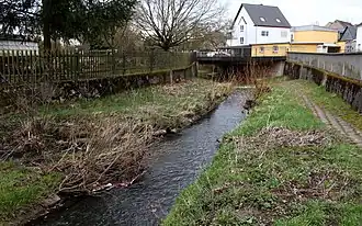 Mündung des Dorndorfer Baches (links) in den Salzbach in der Ortslage von Thalheim