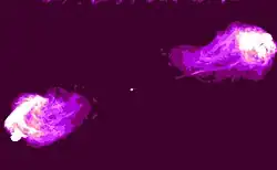 Beispiel einer Fanaroff-Riley Type II Galaxy mit sichtbaren Radio Lobes