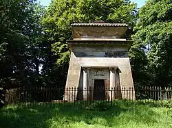 Die Gruft findet sich in einem würfelförmigen Raum unterhalb des Bodens. Ein dekorativer Zaun aus Guss- und Schmiedeeisen umfriedet das Gebäude. Es stammt aus dem frühen 19. Jahrhundert.[1]