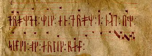 - ↑ Åke Persson, Johannes Holmqvist: Våra äldsta melodier – Codex Runicus – del 2. In: Runtenom 2003–4, S. 6 (Digitalisat ( vom 2. April 2012 im Internet Archive)).