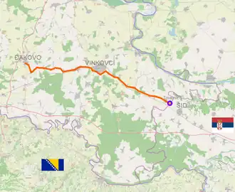 Die Državna cesta D46 (kroatisch für Nationalstraße D46) zweigt im Westen in Đakovo von der Državna cesta D7 ab und führt in generell östlicher Richtung über Ivankovo nach Vinkovci. Dort wird die Državna cesta D55 gekreuzt, die die Državna cesta D2 wenige Kilometer nordwestlich von Vukovar erreicht. Die D46 setzt sich in ostsüdöstlicher Richtung nach Tovarnik fort und erreicht nach weiteren zwei Kilometern die kroatisch-serbische Grenze (mit Grenzübergang) rund 5 km vor der serbischen Stadt Šid (kyrillische Schreibweise: Шид).