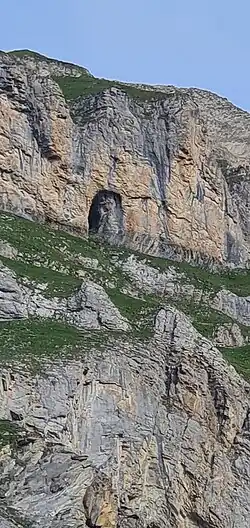 Das Drachenloch ist eine Höhle oberhalb Vättis auf dem Gebiet der Gemeinde Pfäfers im Kanton St. Gallen in der Schweiz. In der Höhle wurden neben Knochen von Höhlenbären Spuren gefunden, die auf menschliches Leben vor mehr als 50'000 Jahren hindeuten. Das Drachenloch liegt auf einer Höhe von 2427 m ü. M. und ist damit die höchstgelegene prähistorische Fundstätte Europas.[1]