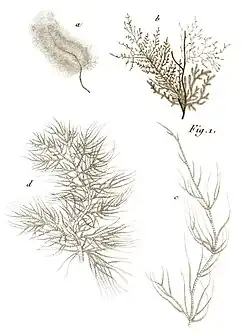 - ↑ a b c d Jean Baptiste Bory de Saint-Vincent: Mémoire sur le genre Draparnaldia, de la famille des Conferves (Abhandlung über die Gattung Draparnaldia aus der Familie der Conferven). In: Annales du Muséum d'Histoire Naturelle, Band 12, 1808, S. 399–409; AlgaeBase:47143, WoRMS:239877. Voyez la planche 35/Siehe Tafel 35 (französisch).