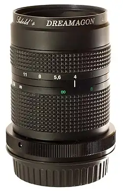 Vor der Realisierung des Dreamagons 4/90 mm für das Kleinbildformat gab es einen Prototyp für das Format 4"×5" mit 210 mm Brennweite.