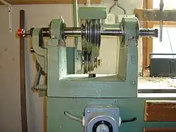 Der Spindelstock befindet sich auf der linken Seite der Drehbank (bei Linksdrehbänken rechts) und stellt den bedeutendsten Teil der Drehbank dar. Er besteht im Normalfall aus dem Lagerbock, der beidseitigen Horizontallagerung, dem Gegendrucklager, der Spindel (Welle) und den Riemenscheiben. Aber auch andere Bauweisen sind bekannt. Die Hohlspindel oder Hohlwelle dient der Übertragung der Drehbewegung auf das Werkstück über die Werkstückbefestigung. Die Befestigung kann durch diverse Mitnehmer, Spund-, Anschlag-, Schrauben-, Backen- oder andere Futter erfolgen. Die Kraft des Motors kann über Keilriemen, Flachriemen, Schnur, Getriebe oder direkt auf die Welle übertragen werden. Eine elektronische Drehzahlregelung entspricht dem heutigen Stand der Technik.