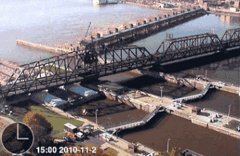 Beispiel für die Drehphasen der Nordschleusenbrücke in Bremerhaven
