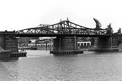 Die historische Drehbrücke in Krefeld-Linn verbindet den Stadtteil Linn mit der Landzunge zwischen dem Linner Rheinhafen und dem Rheinufer.