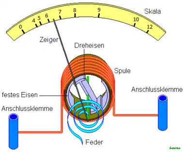 Ein Dreheisen- oder Weicheisenmesswerk dient zur Messung der elektrischen Stromstärke und wird in analogen Strommessgeräten eingesetzt. Es wandelt die Stromstärke in eine entsprechende Anzeige um.