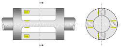 - die Übertragung über flächige Antennen (kapazitiv), die sich wie zwei Kondensatorplatten gegenüberstehen (elektrisch leitende Ringe oder Übertragung an der Stirnseite der Welle)
