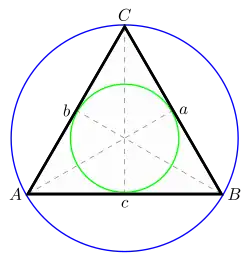 Gleichseitiges Dreieck mit Umkreis und Inkreis