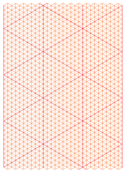 Dreiecknetzpapier (auch Isometriepapier) gehört zu den mathematischen Papieren und ist mit einem dreieckigen Koordinatennetz (gleichseitige Dreiecke) versehen.