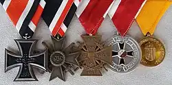 Auch für Orden, die sonst ein normales Band haben, kann es ein adäquates Dreiecksband geben. Das ist etwa bei historischen deutschen Auszeichnungen der Fall, da Österreich-Ungarn und das Deutsche Reich in beiden Weltkriegen Verbündete waren. So kam es auch vor, dass ein Angehöriger der k.u.k. Streitkräfte oder der ungarischen Landwehr (Honvéd) eine deutsche Auszeichnung verliehen bekam und diesen dann entsprechend den eigenen Auszeichnungen am Dreiecksband trug.