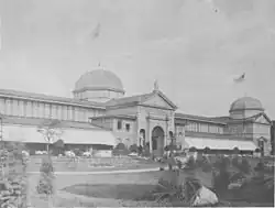 Die Offenbacher Zementfabrik Feege & Gotthardt errichtete anlässlich der 2. Hessischen Landes-Gewerbeausstellung 1879 einen den Fußgängerweg überspannenden 16 Meter weiten gewölbten Träger, sowie einen Pavillon mit Kuppel aus nicht armiertem Portlandzement. Das Bauwerk hat keinerlei Nutzfunktion und wurde nur erstellt, um die Vielseitigkeit des zu dieser Zeit in Deutschland noch wenig verbreiteten Baustoffes aufzuzeigen.[7] Haltbarkeitsziel war die ursprünglich geplante Dauer der Ausstellung, drei Monate. Sie erwiesen sich aber als so stabil, dass sie – anders als die übrigen Gebäude der Gewerbeausstellung von 1879 – nicht abgerissen wurden.