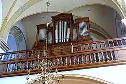 Die Orgel wurde 1877 von den Gebrüdern Stumm (Rhaunen-Sulzbach) mit 18 Registern auf zwei Manualen und Pedal erbaut, und später um eine Trompete im Unterwerk ergänzt. Im Laufe der Zeit wurde das Instrument mehrfach umgebaut (u. a. Umbau der Trakturen, Elektrifizierung) und wurde auch die Disposition verändert bzw. erweitert. In den Jahren 1998 bis 1999 wurde die Orgel von den Stumm-Nachfolgern Gebr. Oberlinger aus Windesheim umfassend restauriert, an ihren ursprünglichen Standort und weitestgehend in ihren ursprünglichen Zustand zurückversetzt. Das Schleifladen-Instrument hat heute 22 Register auf zwei Manualen und Pedal. Die Spiel- und Registertrakturen sind mechanisch.[1]