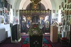 Die außergewöhnlich schöne Ikonostase wurde von Herrn Ljuban Marić aus dem Dorf Bogatić, das sich nahe Lelić in der Opština Valjevo befindet hergestellt. Die Ikonen auf der Ikonostase und die Fresken im Altarbereich sind Werke des akademischen Malers Vidoje Tucaković aus Novi Sad.