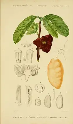 - ↑ a b Pawpaw. bei California Rare Fruit Growers, archiviert vom (nicht mehr online verfügbar) am 20. Juli 2011; abgerufen am 10. November 2019. Info: Der Archivlink wurde automatisch eingesetzt und noch nicht geprüft. Bitte prüfe Original- und Archivlink gemäß Anleitung und entferne dann diesen Hinweis.