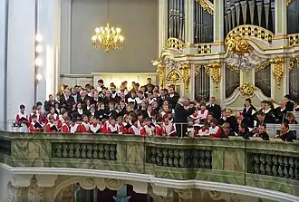 Die Dresdner Kapellknaben sind ein Knabenchor mit einer mehr als 300-jährigen Geschichte. Gemeinsam mit dem Thomanerchor Leipzig und dem Dresdner Kreuzchor zählen sie zum immateriellen Kulturerbe Deutschlands.[1] Ursprünglich von August dem Starken als „Hofkapellknaben“ ins Leben gerufen, um die damaligen Hofgottesdienste zu gestalten, sind sie heute nahezu bei jedem sonntäglichen Hochamt in der katholischen Hofkirche zu Dresden, der Kathedrale des Bistums Dresden-Meißen, präsent. Darüber hinaus erweitert der Chor sein Profil durch regelmäßige Konzertreisen im In- und Ausland.[2]