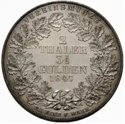 Vereinsdoppeltaler mit Wertangabe 2 / THALER / 3½ / GULDEN und Jahreszahl 1847 (Waldeck-Pyrmont „Dicke Emma“)