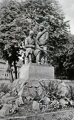 Die Figurengruppe wurde daraufhin demontiert und zunächst auf dem Werksgelände von Rheinmetall-Borsig abgedeckt gelagert. Es gab keine Kapazitäten für die sofortige Einschmelzung. Ein geschichtsbewusster Mitarbeiter versuchte überdies die Einschmelzung zu verhindern, man zerlegte jedoch die Figuren in Teile und vergrub sie in einer stillgelegten Kiesgrube auf dem Werksgelände. Bei Bauarbeiten fanden Arbeiter 1985 die beiden Köpfe. Nachdem am nächsten Morgen die Interessengemeinschaft Stadtgeschichte Sömmerda verständigt war, fand man zur Sicherstellung nur noch den Kopf von Dreyses vor, der sich heute im Museum der Stadt befindet, der Kopf des Soldaten bleibt bis heute unter unbekannten Umständen verschwunden.