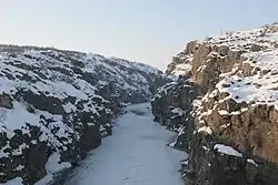 Kurz nach der Staumauer trennt sich der Drin in der Küstenebene Nordalbaniens durch Bifurkation. Bodensenkungen oder Hochwasser in den Jahren 1848, 1858/59 und 1896 führten dazu, dass die Mehrheit der Wassermassen sich einen neuen Weg suchte,[7][8][9] der vermutlich mit dem Verlauf im Altertum einigermaßen übereinstimmen dürfte.
