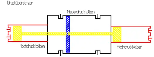 Ein Druckübersetzer (auch Booster) ist eine Freikolbenmaschine zur Änderung (in der Regel: Erhöhung) eines Arbeitsdruckes p1 zu einem Arbeitsdruck p2. Diese Drücke verhalten sich dabei wie die Flächen der Kolben A1 (Primärdruck) zu A2 (Sekundärdruck). Die Druckübersetzer arbeiten diskontinuierlich mit einem einzelnen Hub (etwa für das Hydroforming) oder kontinuierlich in stetiger Bewegung. Die Volumenströme verhalten sich dagegen proportional zur Kolbenfläche.