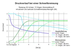 Bei hohen Geschwindigkeiten ist die zeitliche Abstimmung sehr wichtig. Die Geschwindigkeit, mit der sich eine Druckwelle in einem Rohr fortbewegt, ist mit maximal 290 m/s (größenordnungsmäßig die Schallgeschwindigkeit) relativ langsam; der reale Druckabfall infolge der Dehnung der Luft ist noch langsamer. Damit die Züge gleichmäßiger bremsen, wurde die Reaktionsgeschwindigkeit der Bremsventile für lange Güterzüge künstlich verlangsamt. Für Schnellzüge mit einheitlicherem Wagenmaterial und kürzeren Zuglängen ist dies weder notwendig noch erwünscht. Um den Druckabfall zu beschleunigen und damit die Ansprechzeit der Bremsen im Zug zu verkürzen, werden Ventile eingebaut, die einen schnellen Druckabfall in der Hauptluftleitung registrieren und durch Öffnen zusätzlicher Ausströmungen diesen Druckabfall weiter beschleunigen. Damit wird zwar nicht die Durchschlaggeschwindigkeit erhöht, jedoch die Geschwindigkeit des Druckabfalls, die für das Ansprechen der Schnellbremsung im Bremsventil notwendig ist.