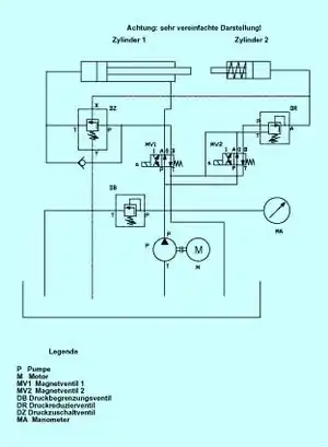 Es werden genormte Hydraulikschaltsymbole zur Darstellung von Hydrauliksystemen verwendet.