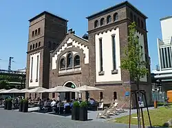 Das Druckwasserwerk am Frankfurter Westhafen diente zur Versorgung der hydraulischen Antriebe (u. a. Wassermotoren) der Hafenanlagen. Das neuromanische Maschinenhaus mit zwei flankierenden Türmen wurde 1886 bis 1888 in Ziegelmauerwerk erbaut und erhielt seine heutige Gestalt in den Jahren 1898 bis 1899.