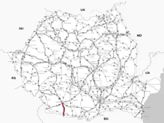 | Straßenende: | Craiova (44° 17′ 10″ N, 23° 47′ 59″ O) |