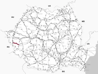 | Straßenbeginn: | Voiteg (45° 27′ 34″ N, 21° 14′ 6″ O) |