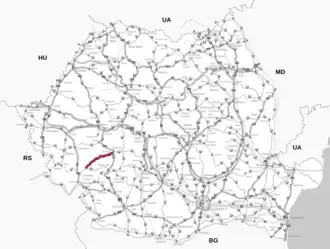 | Straßenbeginn: | Petroșani (45° 22′ 16″ N, 23° 21′ 57″ O) |