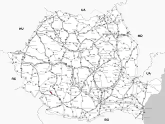 | Straßenbeginn: | Broșteni (44° 45′ 39″ N, 22° 58′ 49″ O) |