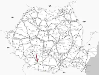 | Straßenende: | Hurezani (44° 48′ 59″ N, 23° 39′ 13″ O) |