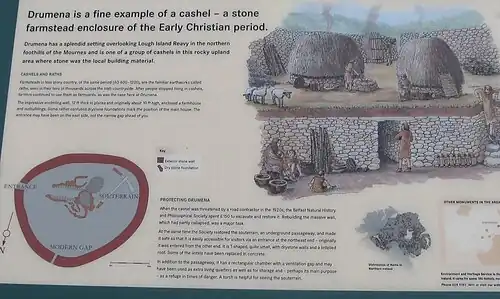 - das „White Fort“ genannte Cashel (ebenfalls mit einem Souterrain) bei Drumaroad im Co. Down barg außerdem die Reste eines Stein- und eines Lehmbaus.