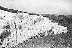 ![]() Luftaufnahme des Nördlichen Eisfelds mit dem Credner-, dem Drygalski- und dem Großen Penck-Gletscher (Foto: Walter Mittelholzer, 1930) | ||